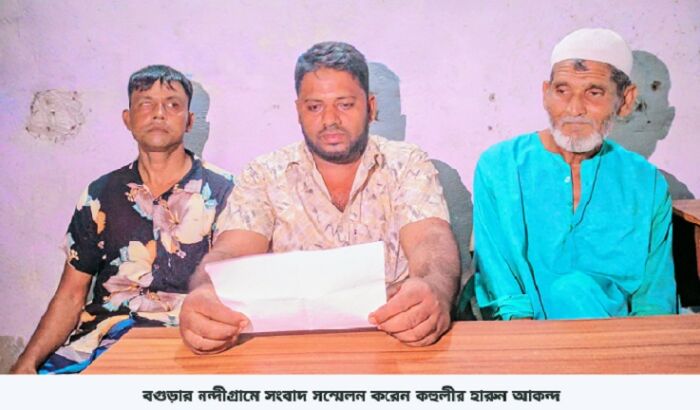 বগুড়ার নন্দীগ্রামে জায়গা লিজ নিয়ে দেয়ার কথা বলে টাকা আত্মসাৎ এবং জায়গাটি নিজ পুত্রের নামে লিজ নেয়ার অভিযোগ উঠেছে এক নারীর বিরুদ্ধে। তাকে মামলাবাজ উল্লেখ করে এবং কতিপয় নামধারী সাংবাদিকদের কুপরামর্শে হয়রানি করা হচ্ছে বলে অভিযোগ এনে বুধবার সংবাদ সম্মেলন করেছেন উপজেলার কহুলী গ্রামের সাইফুল ইসলামের ছেলে হারুন আকন্দ।