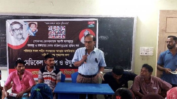 জাতির পিতা বঙ্গবন্ধু শেখ মুজিবুর রহমানসহ পরিবারের সব শহীদের স্মরণে শোকাবহ আগস্ট উপলক্ষে জেলার বাঘারপাড়া উপজেলায় মাসব্যাপী ফ্রি চিকিৎসা সেবা প্রদান করছেন অধ্যাপক ডাক্তার নিকুঞ্জ বিহারি গোলদার।