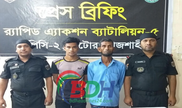 গ্রেফতারকৃরা হলেন- গুরুদাসপুর উপজেলার মশিন্দা বাহাদুরপাড়া এলাকার মৃত শওকতের ছেলে মোঃ ইউসুফ প্রাং (৬০), উপজেলার একই এলাকার ইউসুফ প্রামানিকের ছেলে মো. শিপন প্রামানিক(২০)।