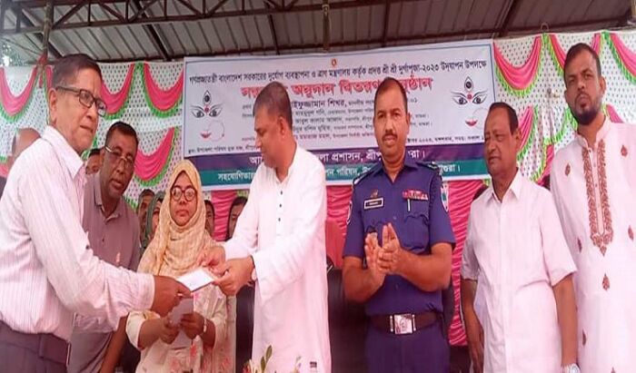 আলোচনা সভা শেষে উপজেলার ১৫১ টি পূজা মন্ডপের সভাপতি ও সাধারণ সম্পাদকের হাতে সরকারি অনুদানের ১৯ হাজার ৭৫০ টাকা, এমপি মহোদয়ের পক্ষ থেকে এক হাজার ও উপজেলা চেয়ারম্যান পাঁচ শত টাকা করে তুলে দেওয়া হয়।