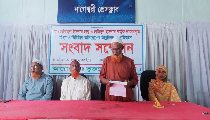 বৃহস্পতিবার (১৬ নভেম্বর) বেলা ১২টায় নাগেশ্বরী প্রেসক্লাব কার্যালয়ে সংবাদ সম্মেলন লিখিত অভিযোগে ভুক্তভোগী মজিবর রহমান অভিযোগ করেন, আব্দুল কুদ্দুস জীবদ্দশ্যায় তাদের সাড়ে ৬ বিঘা জমি বর্গা নিয়ে চাষ করতেন। প্রতি মৌসুমে ধান কাটা মাড়াইয়ের পর তাদের ধান বুঝে দিতেন। আব্দুল কুদ্দুসের দুই ছেলে ভারতের দিল্লীতে থাকতেন।