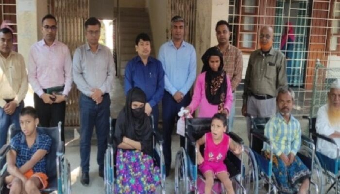 শেরপুরের শ্রীবরদীতে প্রতিবন্ধীদের মাঝে হুইল চেয়ার বিতরণ করা হয়েছে।