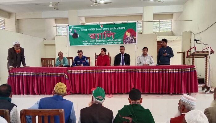 আজ শনিবার (৯ ডিসেম্বর) মুক্ত দিবস উপলক্ষে উপজেলা প্রশাসন ও মুক্তিযোদ্ধা সংসদের উদ্যোগে উপজেলা চত্বর থেকে একটি আনন্দ র্যালি বের হয়ে উপজেলার প্রধান-প্রধান সড়ক প্রদক্ষিণ শেষে উপজেলা পরিষদ হলরুমে এসে শেষ হয় এররপ সেখানে আলোচনা সভা অনুষ্ঠিত হয়।