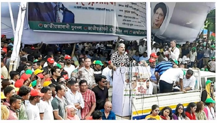 রাজধানীর সোহরাওয়ার্দী উদ্যানে ভেঙ্গে যাওয়া মঞ্চেই চলছে বিএনপির তারুণ্যের সমাবেশ। ‘দেশ বাঁচাতে’ তারুণ্যে সমাবেশের এই আয়োজন করেছে বিএনপির অঙ্গ ও সহযোগী সংগঠন জাতীয়তাবাদী ছাত্রদল, যুবদল ও স্বেচ্ছাসেবক দল। বিকেল পৌনে ৩টার দিকে সমাবেশের মঞ্চ ভেঙ্গে যায়। নেতাকর্মীরা জানান- মঞ্চ ভাঙ্গার পরও সমাবেশ চলছে।